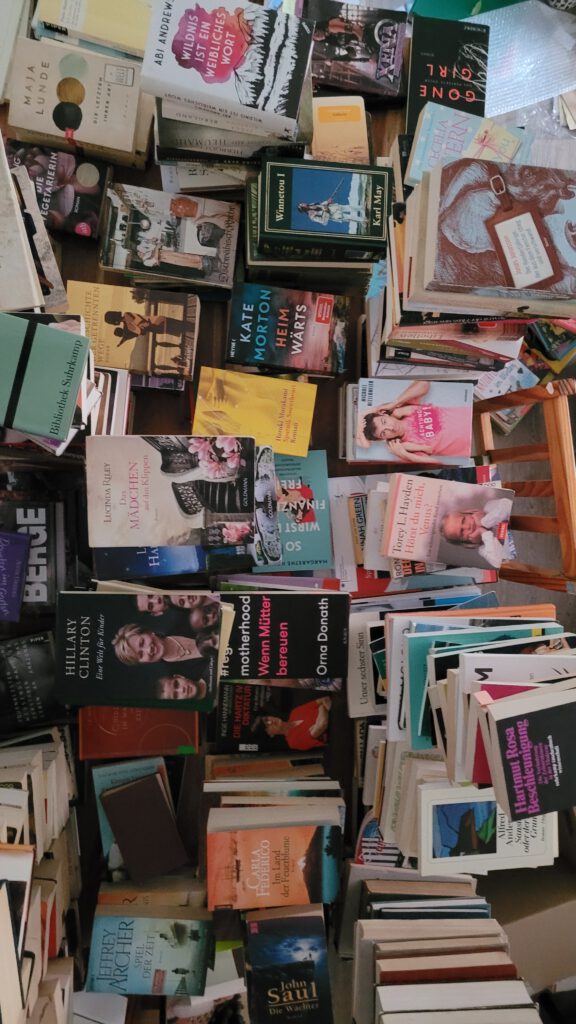 Der Tag beginnt mit Aufräumen.Und dann Essen machen. Heute ist mein kurzer Arbeitstag, also alles ganz entspannt.Lincoln Lawyer zu Ende geschaut. Man war das gut!Arbeiten.Dann hat Hanna ein Buch gesucht. Da ich immer noch kein Bücherregal habe, sind meine Bücher in Kartons auf dem Dachboden. Traurig.Das ist dann schnell eskaliert und wir haben alle Bücher sortiert. Gesuchtes Buch nicht gefunden.Mein Lieblingsstapel: Berge und Wildnis.Das hat so unfassbar lange gedauert. Am Ende wieder alles in Kisten, jetzt immerhin gut sortiert.Zwischendurch Termin in der Schule gehabt. Wieder zurück festgestellt, dass die nicht in die Spülmaschine durften.Kostüm für morgen vorbereitet.Neues Rezept für Bratkartoffeln ausprobiert. War nicht begeistert.Und zum Schluss eine Runde mit den Mädels gespielt: Können Schweine fliegen?