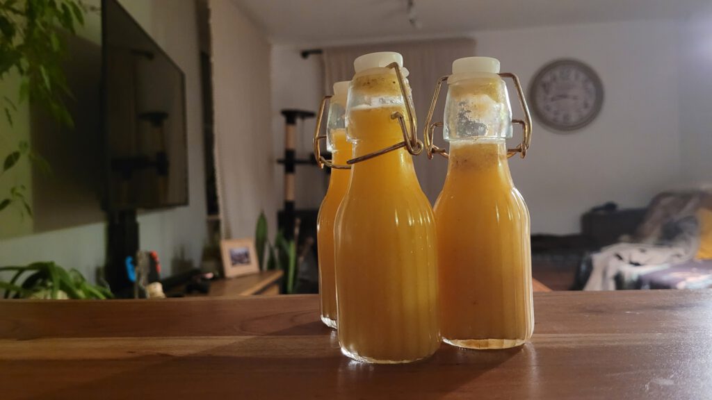 Ingwershots, heute frisch gemacht! Wir lieben immer nochdas gleiche Rezept, mit Orange und Apfel, das ich euch auch schon mal geschrieben hatte. Sie sind so leicht gemacht, da mache ich gerne mal am Wochenende ein paar Flaschen für die Woche vor.